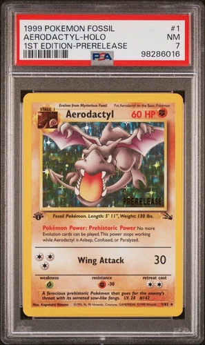 Aerodactyl 1st Edition RARE Prerelease POKEMON Card PSA 7 NM FOSSIL Holo 1/62
