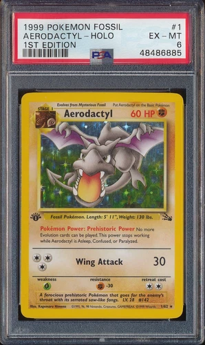 1999 POKEMON AERODACTYL 1ST EDITION HOLO RARE 1/62 BASE SET FOSSIL PSA 6 WOTC