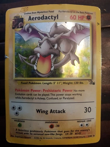 Pokemon Tcg Fossil Holo Rare Aerodactyl 1/62 - HP Heavy Play Vintage Single!