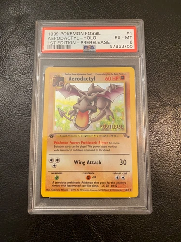 Pokemon TCG: Aerodactyl 1/62 Prerelease 1st Ed PSA 6 Fossil Rare Holo Foil Card