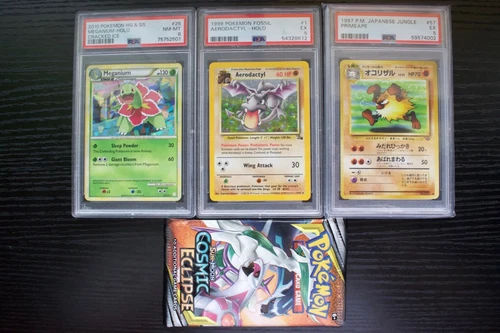Aerodactyl 1/62 Fossil Holo PSA 5, Meganium- holo PSA 8, Primeape JPN PSA 5