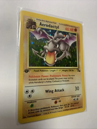 Pokémon TCG Aerodactyl Fossil 1/62 Holo 1999-2000 Wizards Base Set Copyright...