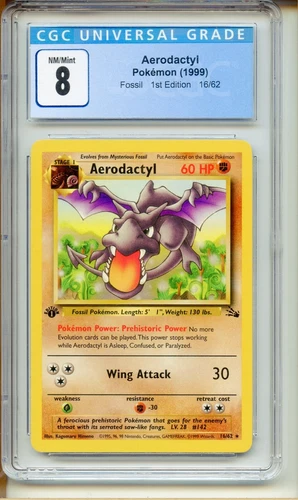 Aerodactyl 16/62 1st Edition Non Holo Pokemon Fossil CGC 8 NM/Mint+ Graded Card