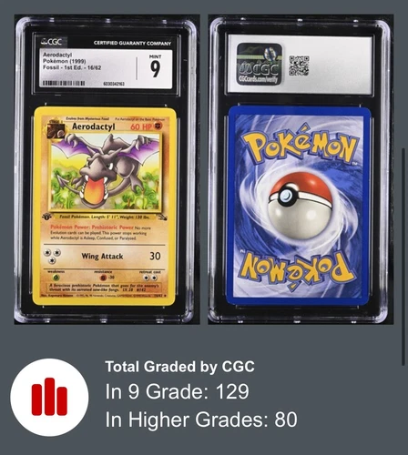 Pokemon Fossil 1st edition Aerodactyl 1/62 CGC 9 + subgrades