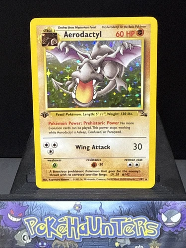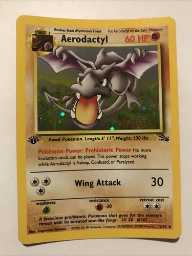 Pokemon card Aerodactyl 1/62 Fossil 1st Edition Holo Rare WOTC Light Play