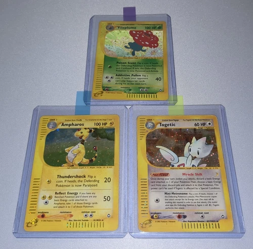 Pokemon AQUAPOLIS - 3 Holo Cards Bundle - H1 Ampharos H27 Togetic H31 Vileplume