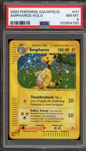 2003 Pokemon Aquapolis #H1 Ampharos Holo PSA 8 NM-MT