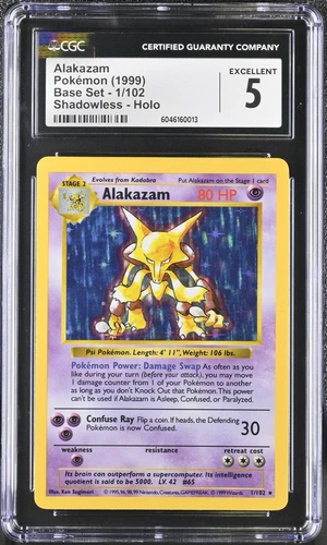 CGC 5 (EX) Alakazam 1999 Base Set 1/102 SHADOWLESS Holo Pokemon Card