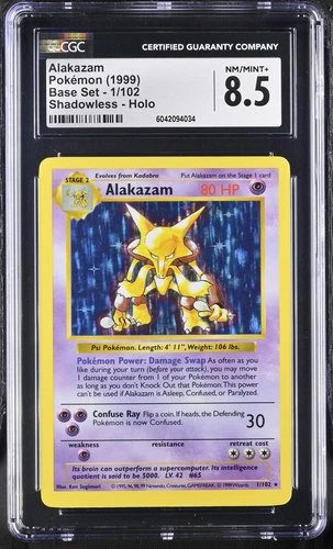 CGC 8.5 Alakazam 1999 Base Set 1/102 Shadowless Holo Pokemon Card