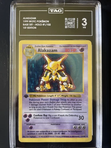 1999 Alakazam Base Set 1/102 1st Edition Shadowless Holo Pokemon Card TAG 3