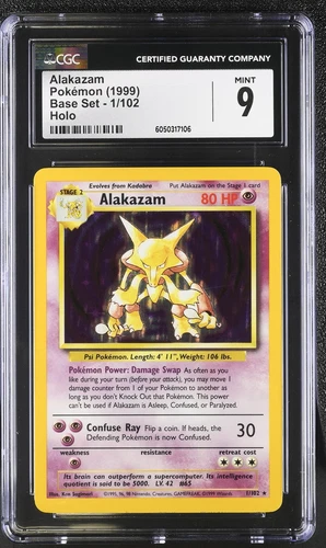 CGC 9 MINT Alakazam 1999 Base Set 1/102 Holo Pokemon Card psa