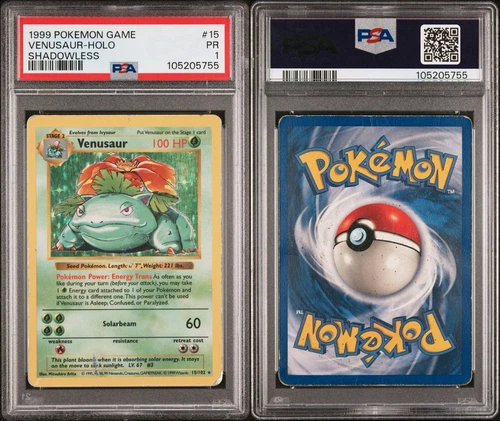 Pokemon TCG Venusaur Shadowless 15/102 Base Set Holo PSA 1 POOR