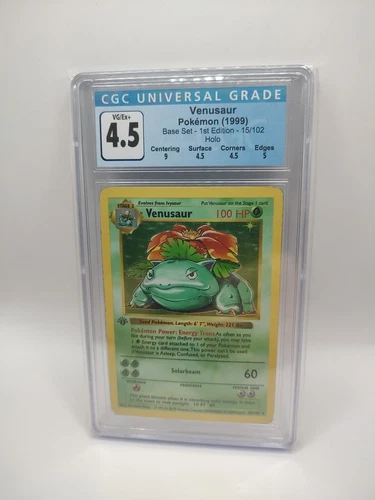 1999 Pokemon Base Set 1st Edition Shadowless #15 Venusaur Holo 15/102 - CGC 4.5