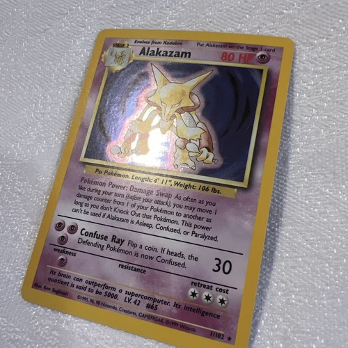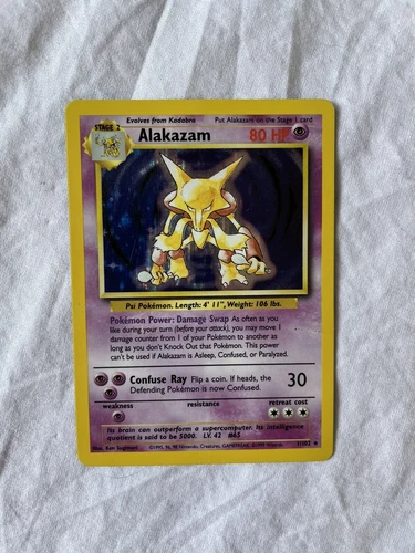 Alakazam Holo Rare Shadowless 1/102 WOTC Base Set Pokemon Card TCG Vintage