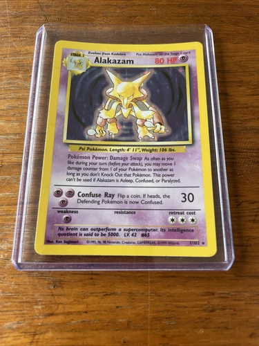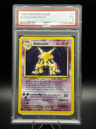 PSA 5 - Alakazam 1/102 Base Set Unlimited - Holo Rare - WOTC - Pokemon Vintage