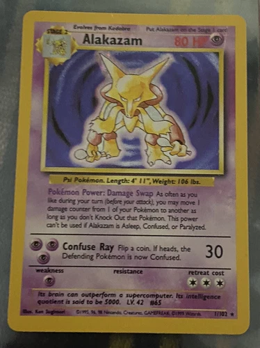 1995 pokemon card  holo Alakazam RARE 1/102