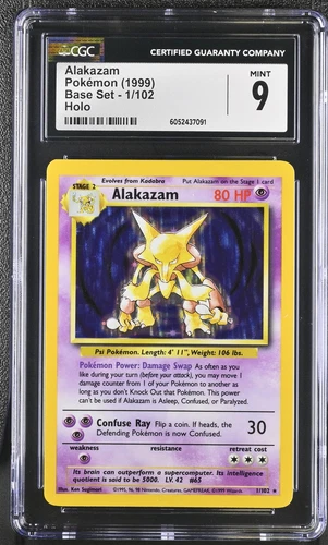 CGC 9 MINT Alakazam 1999 Base Set 1/102 Holo Pokemon Card psa