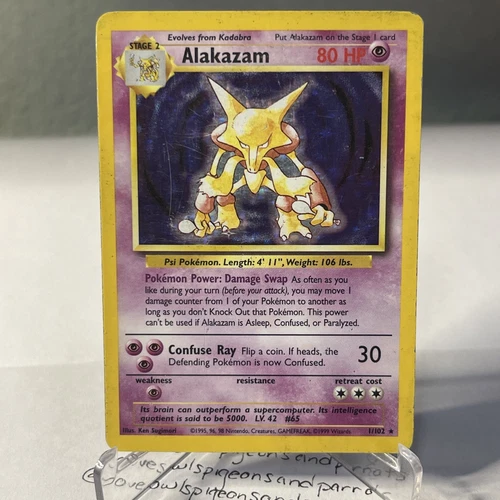 SHADOWLESS Alakazam 1/102 Holo Rare Pokemon Card