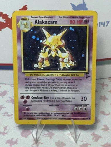 Alakazam Holo rare 1/130 Pokemon Base set 2 w/ Evolution Lineage Abra & Kadabra