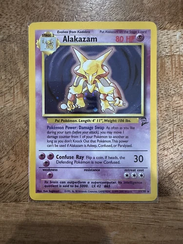 Pokemon Base Set 2 Holo Alakazam 1/130 MP Damaged