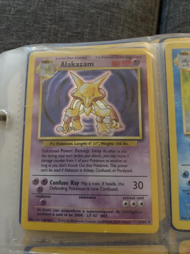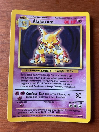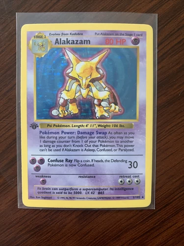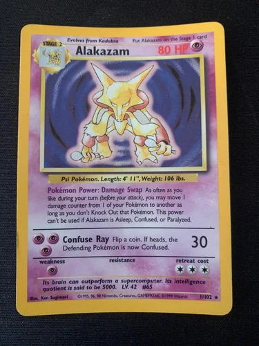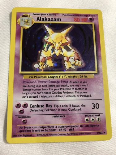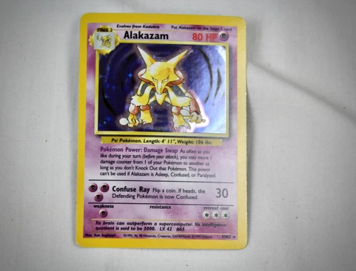 Rare 1995 Pokémon Original Holo Alakazam Card 1/102 Collectible