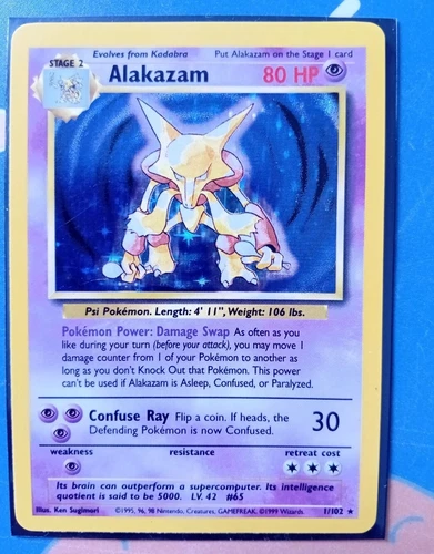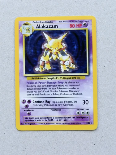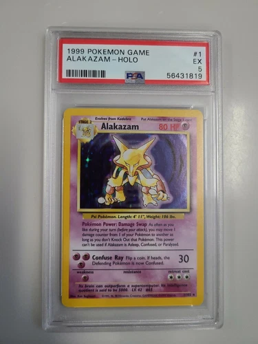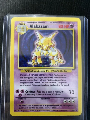 Vintage 1999 pokemon Alakazam- Holo 80 HP 1/102. PSA grade 5