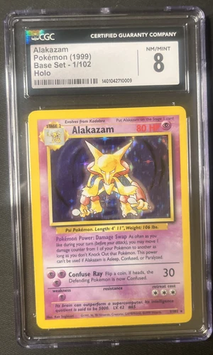CGC 8 Alakazam 1/102 Holo Base Set Unlimited Pokémon Card