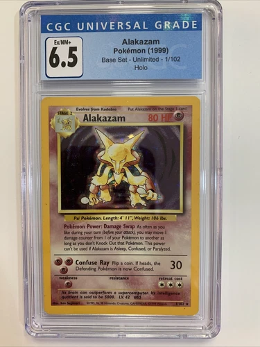 Pokemon Alakazam Base Set Unlimited 1/102 - CGC 6.5 Ex/NM+ | PSA BGS