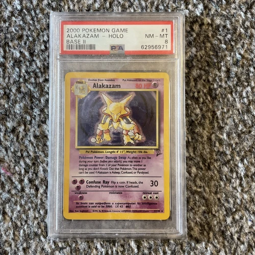 Pokemon Card Alakazam 1/130 Base Set 2 Holo Rare WOTC PSA 8 NM MINT
