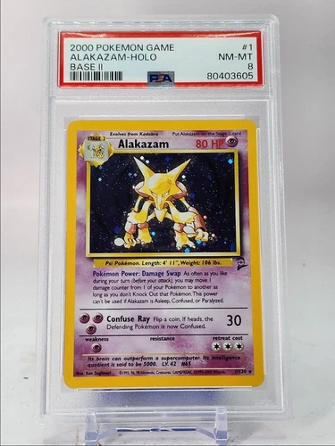 ALAKAZAM 2000 POKEMON GAME BASE SET II RARE HOLO 1/130 PSA 8 Q4444