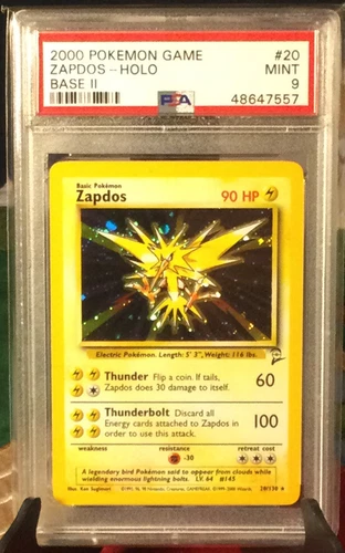 Zapdos PSA 9 Pokemon Card 20/130 Base Set 2 Rare Holo MINT Condition 2000 WOTC