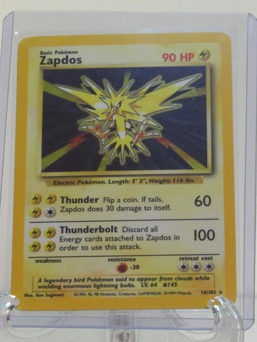 Pokemon Card Unlimited Edition Holo Rare Base Set 1999 Zapdos 16/102 MP