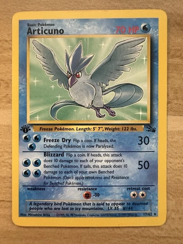 1st Edition Articuno 17/62 Fossil Set Rare Vintage 1999 Pokemon Card - NM