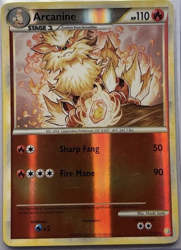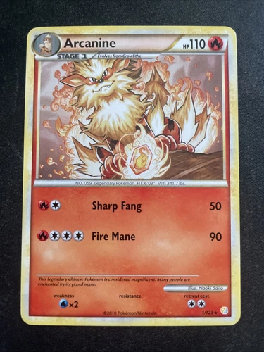 Pokémon TCG Arcanine Heartgold & Soulsilver 1/123 NM 2010 Non-Holo