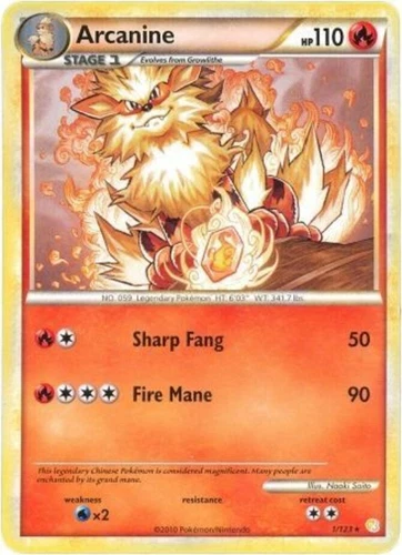 Pokemon TCG Arcanine 1/123 Heartgold & Soulsilver Reverse Holo