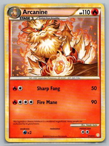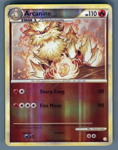 Arcanine 1/123 HeartGold & SoulSilver Holo Rare Pokemon Card 2010