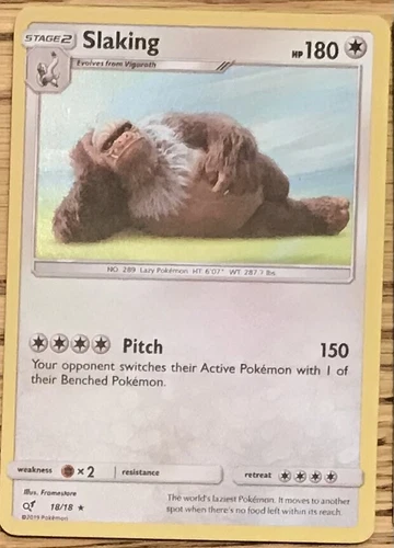 Slaking - 18/18 - Rare LP, English Pokemon Detective Pikachu