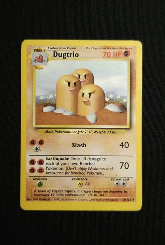 Pokémon TCG Dugtrio Base Set 19/102 Regular Unlimited Rare 1999 Vintage
