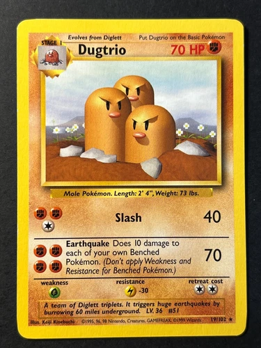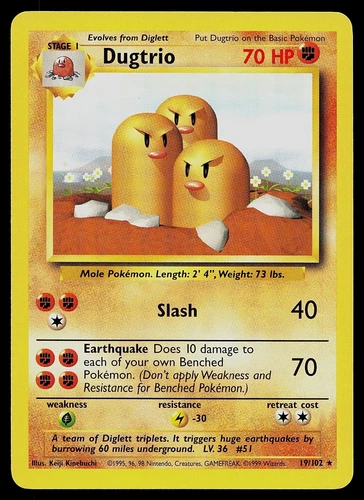 Dugtrio 19/102 Base Set WOTC Unlimited Rare - Pokémon Card D Near Mint