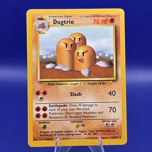 Dugtrio 19/102 Base Set WOTC Unlimited Rare - Pokémon Card - LP