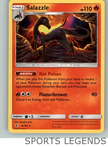 Salazzle 16/145 Rare Guardians Rising Sun & Moon Pokemon Card 2017