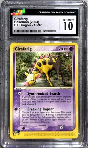 Pokemon Card Girafarig CGC 10 Gem Mint, EX Dragon 16/97, 2003 (1)