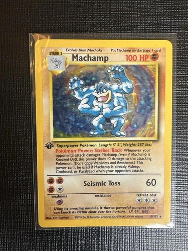 1999 Pokemon TCG 1st Edition Machamp Holo #8/102 Base Set Untocked over 20 years
