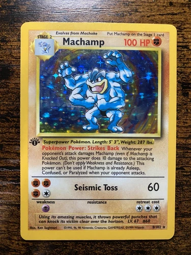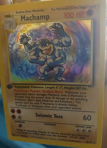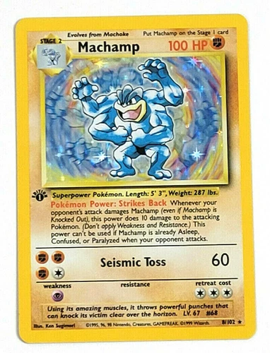 Pokémon Machamp Base 8/102 Holo 1st Edition Shadowless Rare