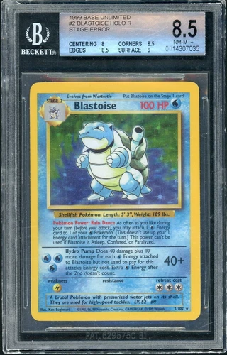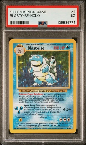 1999 Pokemon Set Unlimited Blastoise Rare Holo #2/102 PSA 6