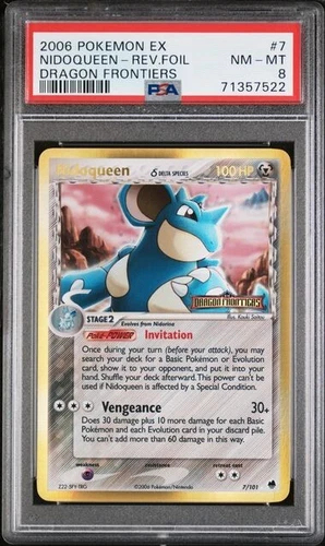 2006 POKEMON EX DRAGON FRONTIERS NIDOQUEEN 7/101 REVERSE STAMPED HOLO PSA 8 B