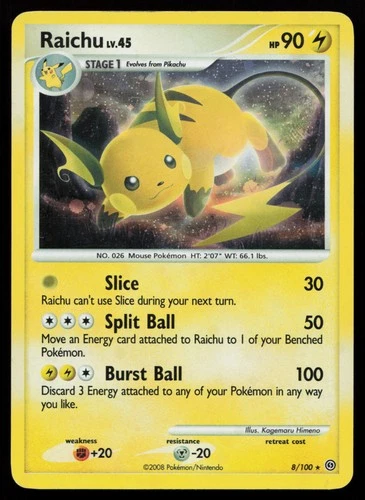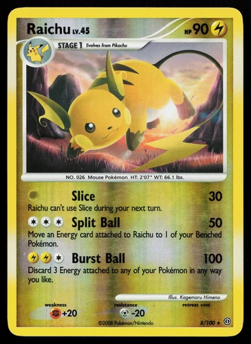 Pokemon TCG Cards Raichu 8/100 Stormfront Reverse Holo Rare