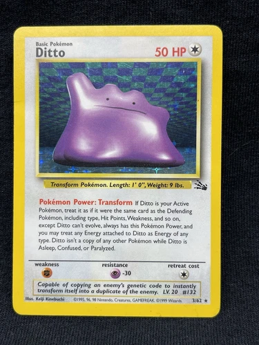 1999 Ditto Pokemon Card MP Holo Fossil Set 3/62 WOTC