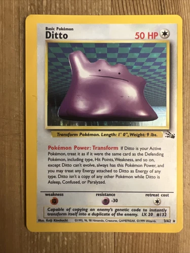 Ditto 3/62 Fossil-Unlimited Edition Holo Pokemon Card