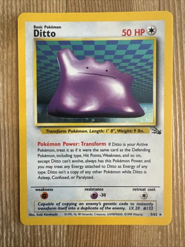 Pokémon TCG Fossil Set Ditto Card 3/62 Vintage Holo Rare, WOTC 1999